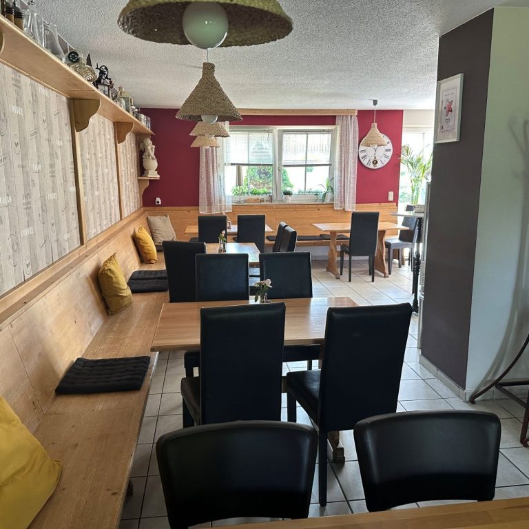 Der Gastraum bietet rund 45 Sitzplätze im Innenbereich sowie weitere ca. 45 Sitzplätze auf der Terrasse.